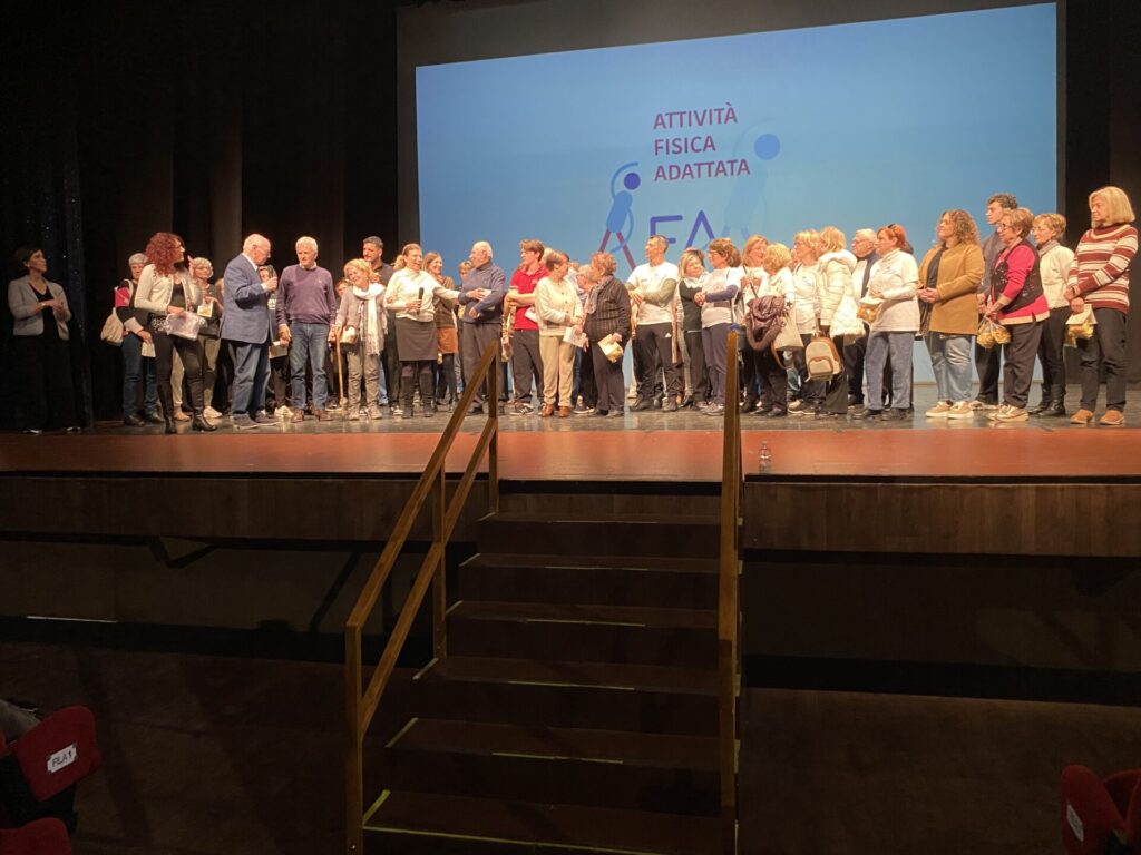 MONTECATINI TERME 03.12.2025 – Si è chiuso con l’evento di questa mattina al Teatro Verdi di Montecatini Terme il primo anno di attività del progetto di Attività Fisica Adattata, avviato lo scorso anno in via sperimentale dalla Società della Salute della Valdinievole, denominato “AFA e dintorni…”. Il progetto, basato sulla co-progettazione, ha coinvolto gli enti del terzo settore nella promozione di interventi con al centro il tema del cosiddetto invecchiamento attivo, e ha visto la partecipazione di oltre mille iscritti. Ben tredici gli enti che hanno preso parte alla sperimentazione, che hanno realizzato sul territorio della Valdinievole un calendario ampio ed eterogeneo di attività nell’arco del 2025: attività mirate alla promozione del benessere psicofisico delle persone più fragili e soprattutto della terza età e alla acquisizione di stili di vita sani e comportamenti salutari, con una particolare attenzione al tema della socializzazione e del contrasto all’isolamento.
